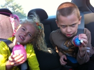When everyone was in the car, I reached into my stash of fun stuff and found some water balloons….yesss..perfect… But there were no plans for a water balloon fight.