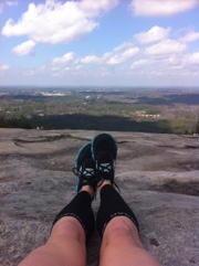 So I’m running along, very painfully might I add, and I see a blonde girl that kinda looks like me coming from the opposite direction. There’s not many blonde ultra chicks that look like me running stone mountain, and I knew it could only be one girl: ERIN GOLDEN! Erin runs ultras and just recently started training at Stone Mountain. So we stop and chat for a minute and Erin says, “Oh yeah, by the way, if you’re headed back that way, get ready to see some cops. Apparently John Travolta And Robert DeNiro are here today filming a movie.”